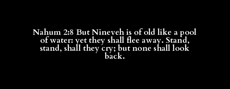 Nahum 2:8 But Nineveh is of old like a pool of water: yet they shall flee away. Stand, stand, shall they cry; but none shall look back.