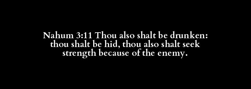Nahum 3:11 Thou also shalt be drunken: thou shalt be hid, thou also shalt seek strength because of the enemy.