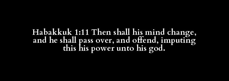 Habakkuk 1:11 Then shall his mind change, and he shall pass over, and offend, imputing this his power unto his god.