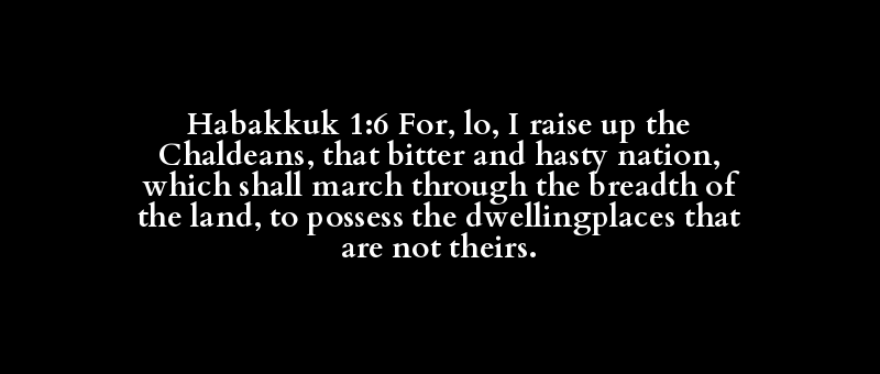 Habakkuk 1:6 For, lo, I raise up the Chaldeans, that bitter and hasty nation, which shall march through the breadth of the land, to possess the dwellingplaces that are not theirs.