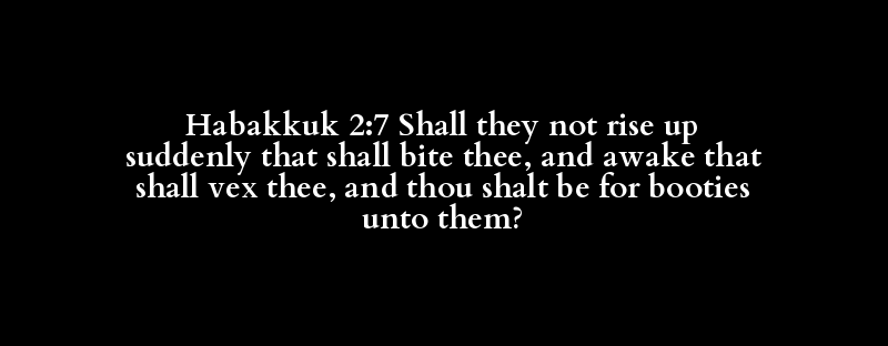 Habakkuk 2:7 Shall they not rise up suddenly that shall bite thee, and awake that shall vex thee, and thou shalt be for booties unto them?