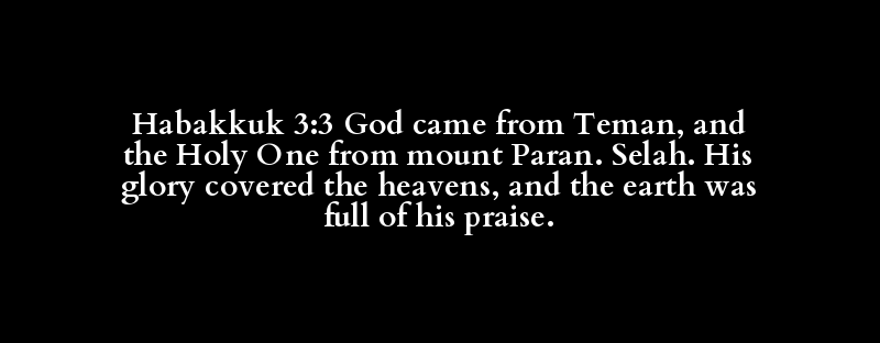 Habakkuk 3:3 God came from Teman, and the Holy One from mount Paran. Selah. His glory covered the heavens, and the earth was full of his praise.