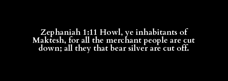 Zephaniah 1:11 Howl, ye inhabitants of Maktesh, for all the merchant people are cut down; all they that bear silver are cut off.