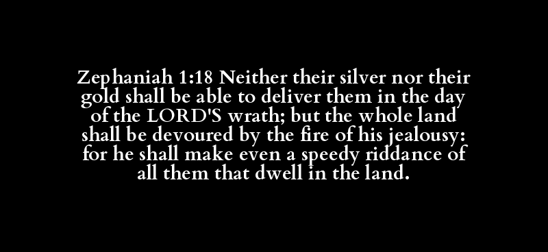 Zephaniah 1:18 Neither their silver nor their gold shall be able to deliver them in the day of the LORD'S wrath; but the whole land shall be devoured by the fire of his jealousy: for he shall make even a speedy riddance of all them that dwell in the land.