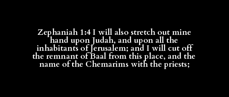 Zephaniah 1:4 I will also stretch out mine hand upon Judah, and upon all the inhabitants of Jerusalem; and I will cut off the remnant of Baal from this place, and the name of the Chemarims with the priests;