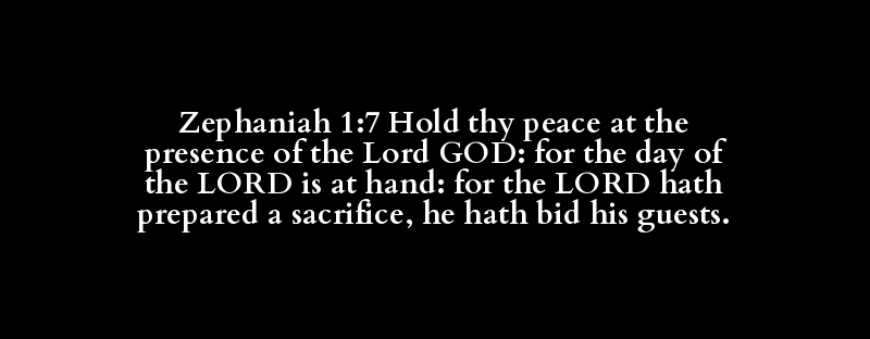 Zephaniah 1:7 Hold thy peace at the presence of the Lord GOD: for the day of the LORD is at hand: for the LORD hath prepared a sacrifice, he hath bid his guests.