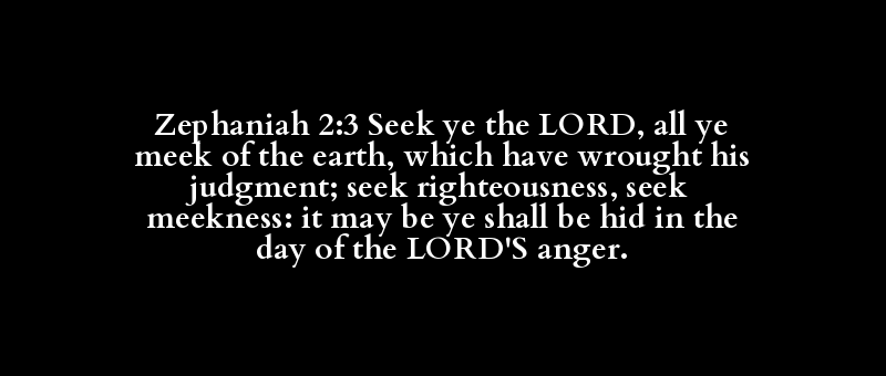Zephaniah 2:3 Seek ye the LORD, all ye meek of the earth, which have wrought his judgment; seek righteousness, seek meekness: it may be ye shall be hid in the day of the LORD'S anger.