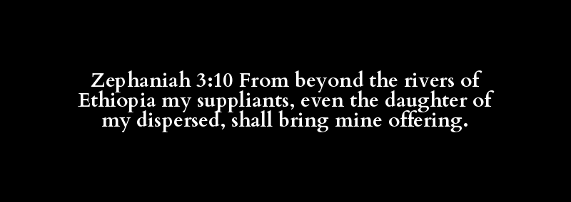 Zephaniah 3:10 From beyond the rivers of Ethiopia my suppliants, even the daughter of my dispersed, shall bring mine offering.