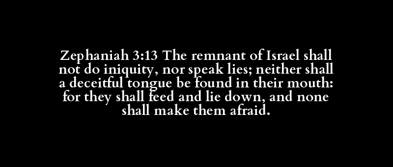 Zephaniah 3:13 The remnant of Israel shall not do iniquity, nor speak lies; neither shall a deceitful tongue be found in their mouth: for they shall feed and lie down, and none shall make them afraid.