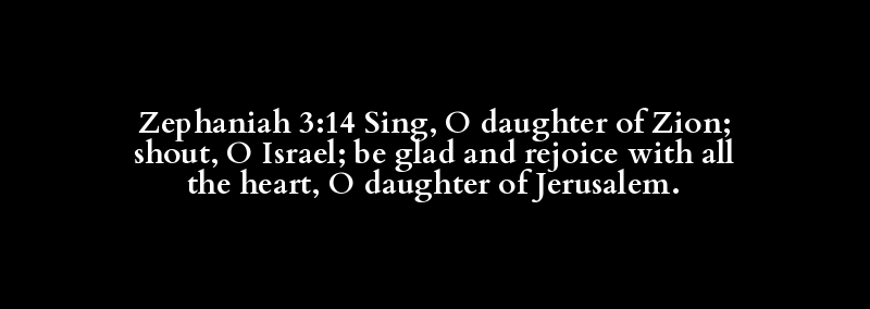 Zephaniah 3:14 Sing, O daughter of Zion; shout, O Israel; be glad and rejoice with all the heart, O daughter of Jerusalem.