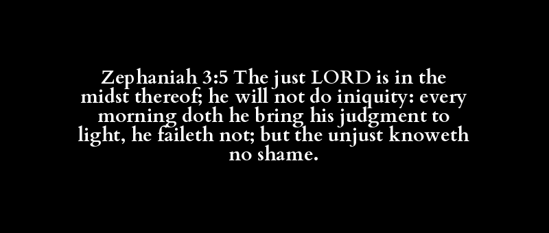 Zephaniah 3:5 The just LORD is in the midst thereof; he will not do iniquity: every morning doth he bring his judgment to light, he faileth not; but the unjust knoweth no shame.