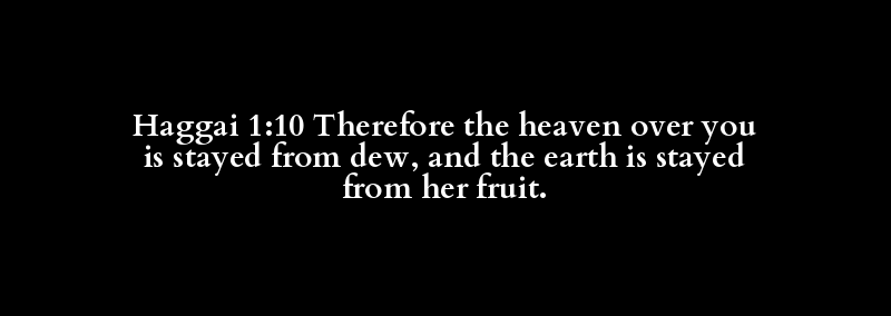Haggai 1:10 Therefore the heaven over you is stayed from dew, and the earth is stayed from her fruit.