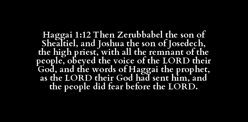 Haggai 1:12 Then Zerubbabel the son of Shealtiel, and Joshua the son of Josedech, the high priest, with all the remnant of the people, obeyed the voice of the LORD their God, and the words of Haggai the prophet, as the LORD their God had sent him, and the people did fear before the LORD.