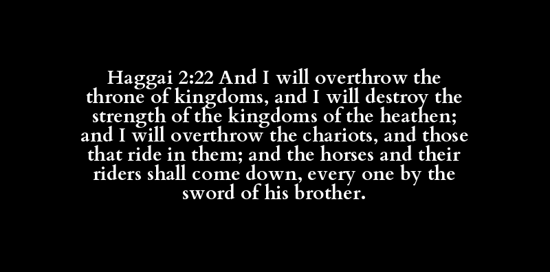| הָפַךְ | כִּסֵּא | מַמְלָכָה | שָׁמַד | חֹזֶק | מַמְלָכָה | גּוֹי | הָפַךְ | מֶרְכָּבָה | רָכַב | סוּס | רָכַב | יָרַד | אִישׁ | חֶרֶב | אָח |