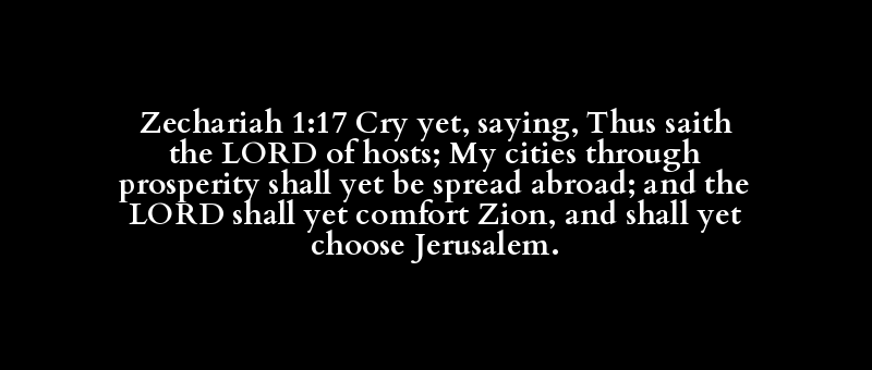 Zechariah 1:17 Cry yet, saying, Thus saith the LORD of hosts; My cities through prosperity shall yet be spread abroad; and the LORD shall yet comfort Zion, and shall yet choose Jerusalem.