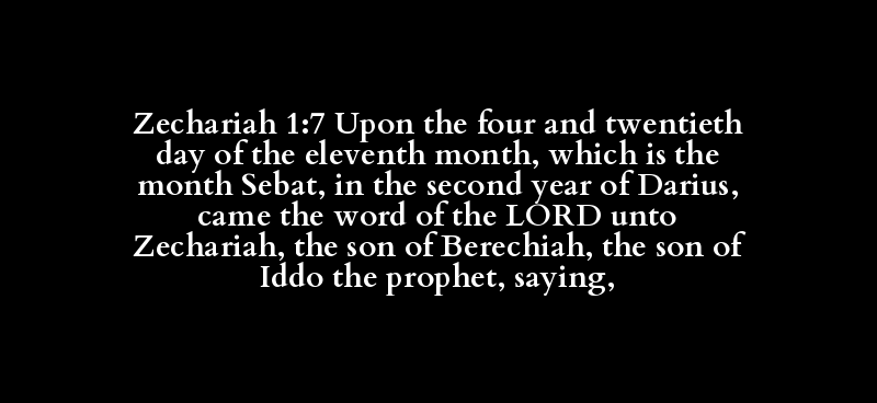 Zechariah 1:7 Upon the four and twentieth day of the eleventh month, which is the month Sebat, in the second year of Darius, came the word of the LORD unto Zechariah, the son of Berechiah, the son of Iddo the prophet, saying,