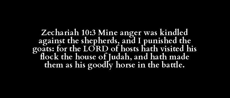 Zechariah 10:3 Mine anger was kindled against the shepherds, and I punished the goats: for the LORD of hosts hath visited his flock the house of Judah, and hath made them as his goodly horse in the battle.