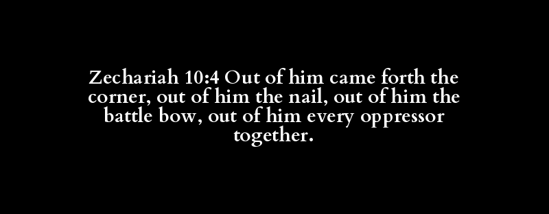Zechariah 10:4 Out of him came forth the corner, out of him the nail, out of him the battle bow, out of him every oppressor together.