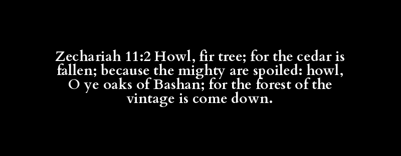Zechariah 11:2 Howl, fir tree; for the cedar is fallen; because the mighty are spoiled: howl, O ye oaks of Bashan; for the forest of the vintage is come down.