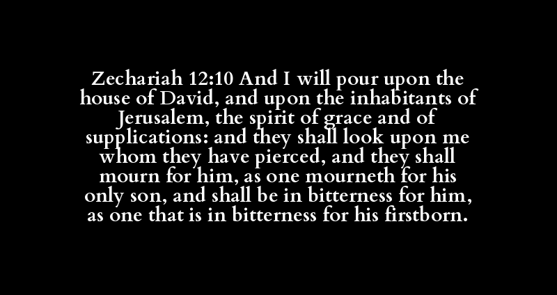 Zechariah 12:10 And I will pour upon the house of David, and upon the inhabitants of Jerusalem, the spirit of grace and of supplications: and they shall look upon me whom they have pierced, and they shall mourn for him, as one mourneth for his only son, and shall be in bitterness for him, as one that is in bitterness for his firstborn.