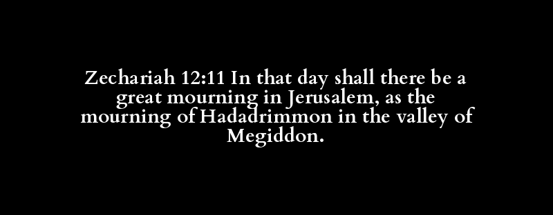 Zechariah 12:11 In that day shall there be a great mourning in Jerusalem, as the mourning of Hadadrimmon in the valley of Megiddon.