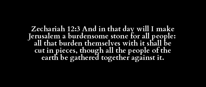 Zechariah 12:3 And in that day will I make Jerusalem a burdensome stone for all people: all that burden themselves with it shall be cut in pieces, though all the people of the earth be gathered together against it.