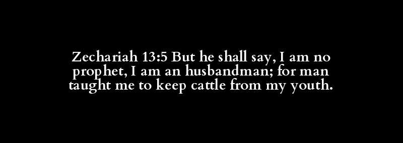 Zechariah 13:5 But he shall say, I am no prophet, I am an husbandman; for man taught me to keep cattle from my youth.