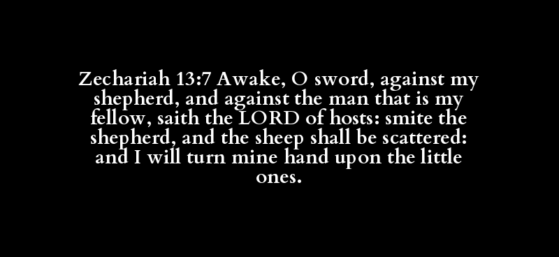 Zechariah 13:7 Awake, O sword, against my shepherd, and against the man that is my fellow, saith the LORD of hosts: smite the shepherd, and the sheep shall be scattered: and I will turn mine hand upon the little ones.