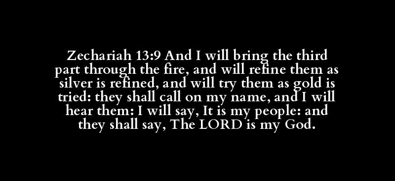 Zechariah 13:9 And I will bring the third part through the fire, and will refine them as silver is refined, and will try them as gold is tried: they shall call on my name, and I will hear them: I will say, It is my people: and they shall say, The LORD is my God.
