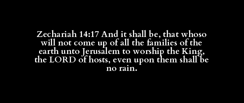 Zechariah 14:17 And it shall be, that whoso will not come up of all the families of the earth unto Jerusalem to worship the King, the LORD of hosts, even upon them shall be no rain.