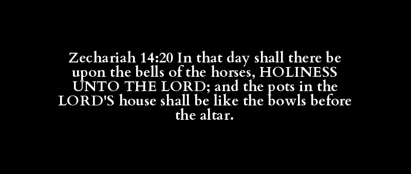 Zechariah 14:20 In that day shall there be upon the bells of the horses, HOLINESS UNTO THE LORD; and the pots in the LORD'S house shall be like the bowls before the altar.