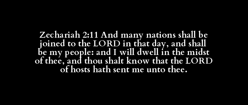 Zechariah 2:11 And many nations shall be joined to the LORD in that day, and shall be my people: and I will dwell in the midst of thee, and thou shalt know that the LORD of hosts hath sent me unto thee.