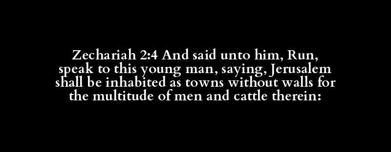 Zechariah 2:4 And said unto him, Run, speak to this young man, saying, Jerusalem shall be inhabited as towns without walls for the multitude of men and cattle therein: