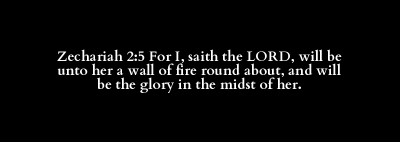 Zechariah 2:5 For I, saith the LORD, will be unto her a wall of fire round about, and will be the glory in the midst of her.