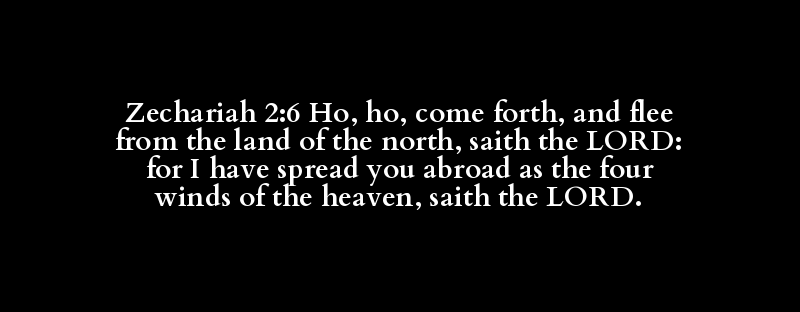 Zechariah 2:6 Ho, ho, come forth, and flee from the land of the north, saith the LORD: for I have spread you abroad as the four winds of the heaven, saith the LORD.