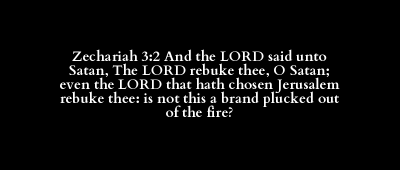 Zechariah 3:2 And the LORD said unto Satan, The LORD rebuke thee, O Satan; even the LORD that hath chosen Jerusalem rebuke thee: is not this a brand plucked out of the fire?