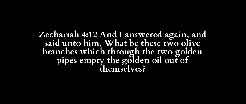 Zechariah 4:12 And I answered again, and said unto him, What be these two olive branches which through the two golden pipes empty the golden oil out of themselves?