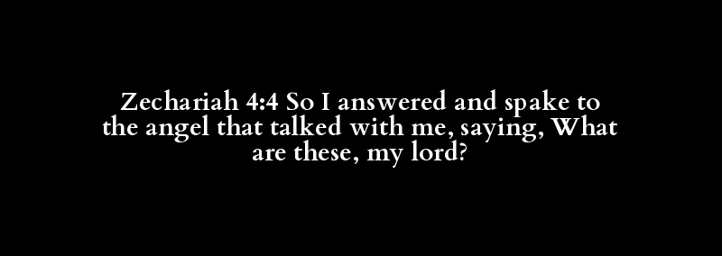 Zechariah 4:4 So I answered and spake to the angel that talked with me, saying, What are these, my lord?