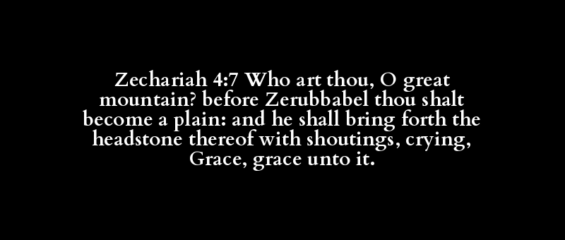 Zechariah 4:7 Who art thou, O great mountain? before Zerubbabel thou shalt become a plain: and he shall bring forth the headstone thereof with shoutings, crying, Grace, grace unto it.