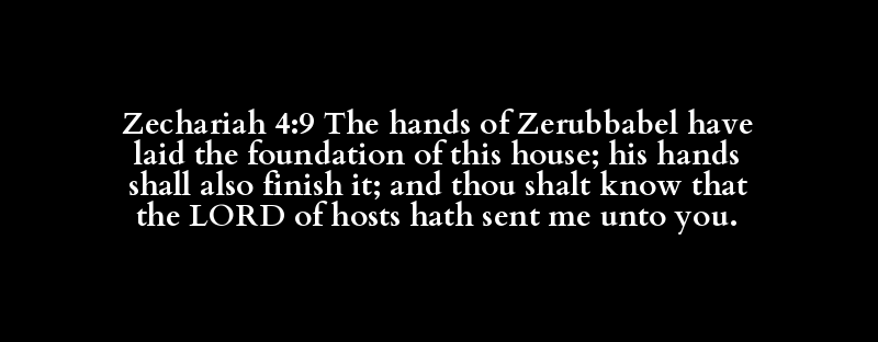 Zechariah 4:9 The hands of Zerubbabel have laid the foundation of this house; his hands shall also finish it; and thou shalt know that the LORD of hosts hath sent me unto you.
