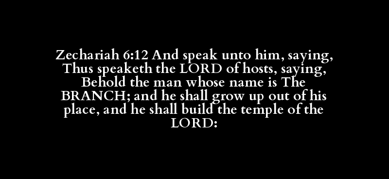 Zechariah 6:12 And speak unto him, saying, Thus speaketh the LORD of hosts, saying, Behold the man whose name is The BRANCH; and he shall grow up out of his place, and he shall build the temple of the LORD: