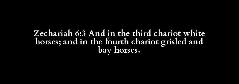 Zechariah 6:3 And in the third chariot white horses; and in the fourth chariot grisled and bay horses.