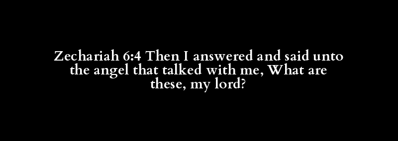 Zechariah 6:4 Then I answered and said unto the angel that talked with me, What are these, my lord?