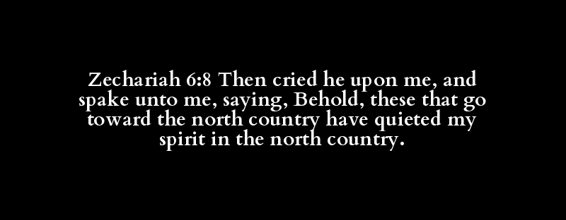 Zechariah 6:8 Then cried he upon me, and spake unto me, saying, Behold, these that go toward the north country have quieted my spirit in the north country.