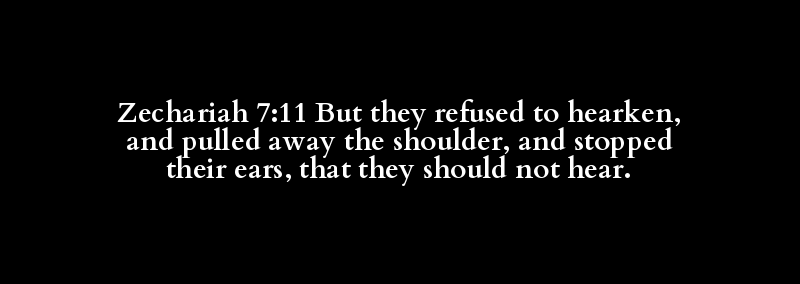 Zechariah 7:11 But they refused to hearken, and pulled away the shoulder, and stopped their ears, that they should not hear.