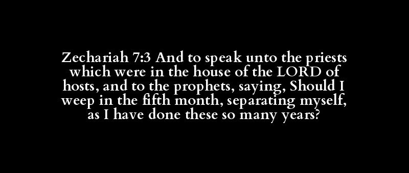 Zechariah 7:3 And to speak unto the priests which were in the house of the LORD of hosts, and to the prophets, saying, Should I weep in the fifth month, separating myself, as I have done these so many years?