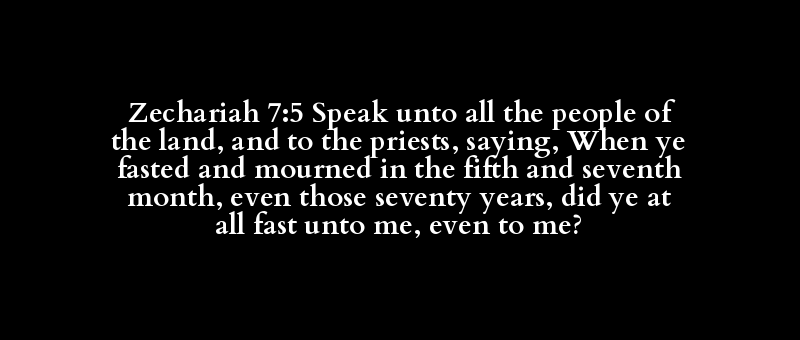 Zechariah 7:5 Speak unto all the people of the land, and to the priests, saying, When ye fasted and mourned in the fifth and seventh month, even those seventy years, did ye at all fast unto me, even to me?