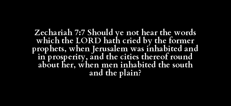 Zechariah 7:7 Should ye not hear the words which the LORD hath cried by the former prophets, when Jerusalem was inhabited and in prosperity, and the cities thereof round about her, when men inhabited the south and the plain?