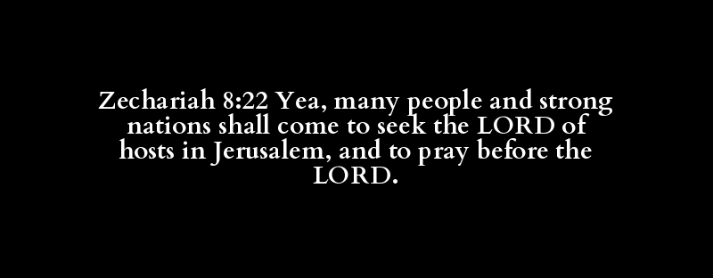 Zechariah 8:22 Yea, many people and strong nations shall come to seek the LORD of hosts in Jerusalem, and to pray before the LORD.