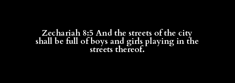 Zechariah 8:5 And the streets of the city shall be full of boys and girls playing in the streets thereof.